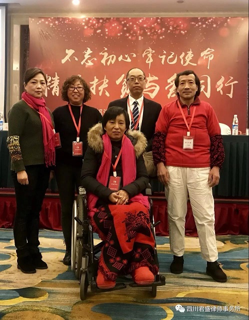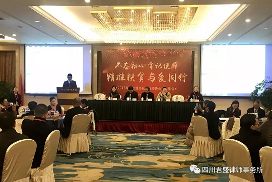 冯林,韩志勇,杨云飞,谭岸林,何书群等市领导莅临会场并对扶贫工作作出重要总结与指示,大会授予四川君盛律师事务所副主任,高级合伙人李祝辉律师2017年扶贫“先进工作者”荣誉称号,并聘任李祝辉律师担任扶贫互助协会第一届副会长。
