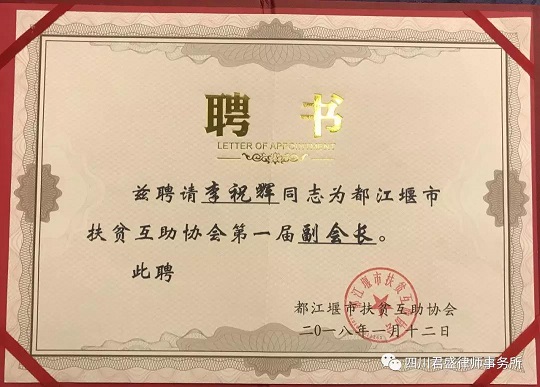 聘任李祝辉律师担任扶贫互助协会第一届副会长